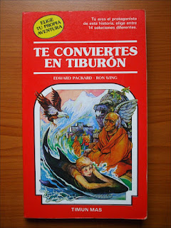 Buenas de nuevo. En la entrada de hoy quiero dar a conocer una actividad de animación a la lectura que hemos realizado este curso. Es la lectura del libro «Te conviertes en tiburón» , de la serie de libros «Elige tu propia aventura» de Edward Packard, de la editorial Timun Mas.